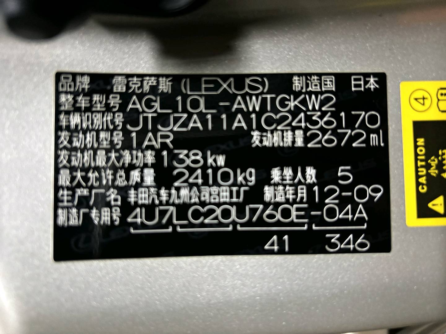 Lexus RX270 2.7L 2WD 2012